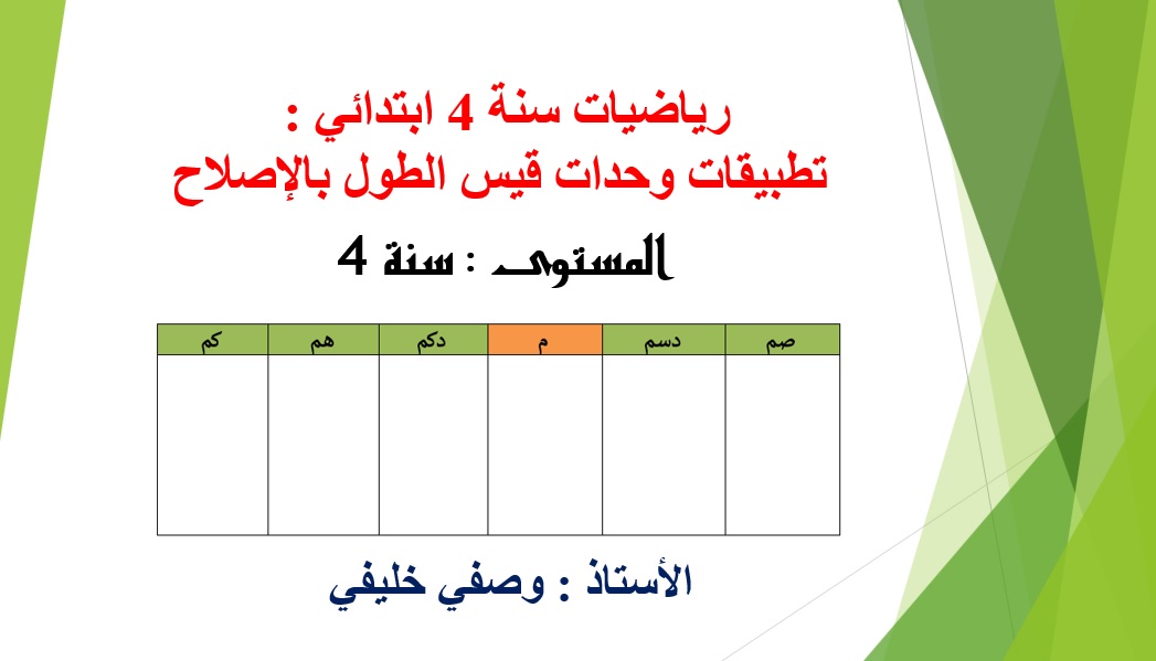 رياضيات سنة 4 إبتدائي : تطبيقات وحدات قيس الطول