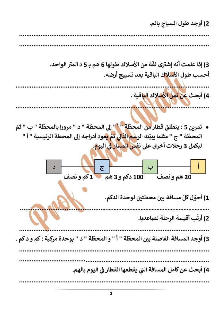 تمارين قيس المسافة سنة رابعة إبتدائي