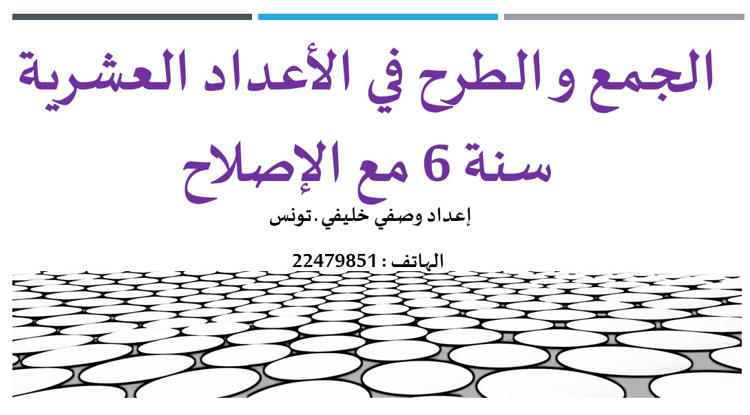 الجمع و الطرح في الأعداد العشرية سنة 6 مع الإصلاح تمارين رياضيات سنة 6 الأعداد العشريةالأعداد العشرية سنة سادسةرياضيات سنة 6 الثلاثي الأول Navigation de l’article رياضيات سنة 6 ابتدائي : تطبيقات وحدات قيس المساحة و الأعداد الكسريةرياضيات سنة 6 الثلاثي 1 مع الإصلاح ـ دعم و علاج